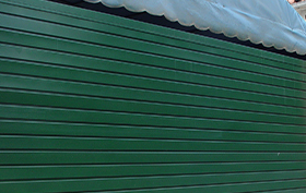 Valla de chapa nervada con pliegues horizontales o verticales, diferentes anchos a elegir. Construida con marco de tubo pds-26 o ángulo según dimensiones.