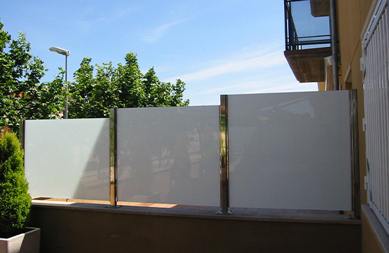 Divisorias de vidrio que combinan diseño moderno y funcionalidad, ofreciendo soluciones elegantes para la compartimentación de espacios exteriores. Están fabricadas con montantes de tubo de acero inoxidable, lo que garantiza una alta resistencia, durabilidad y un acabado estético impecable. Los perfiles incluyen junquillos soldados que permiten el perfecto alojamiento de vidrio laminado, aportando seguridad y una apariencia continua y limpia.